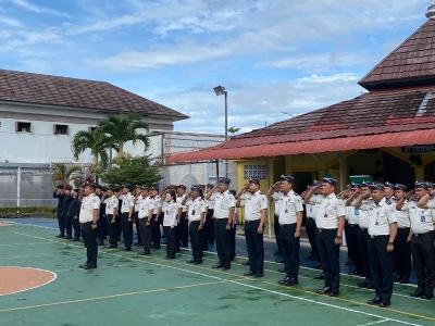 InspirasiToday – Rumah Tahanan Negara Batam melaksanakan kegiatan penyematan kenaikan pangkat kepada 29 pegawai yang berlangsung di Lapangan Serba Guna Rutan Batam, Senin (06/04/2026).