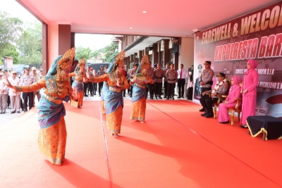 Rangkaian kegiatan diawali dengan penyambutan Kapolresta Barelang yang baru beserta Ketua Bhayangkari Cabang Barelang. Prosesi dilakukan melalui pengalungan bunga, jajar hormat, laporan perwira pedang pora, serta tradisi pedang pora. Penyambutan juga diwarnai tarian persembahan adat Melayu dan prosesi sekapur sirih sebagai bentuk penghormatan serta pelestarian kearifan lokal.