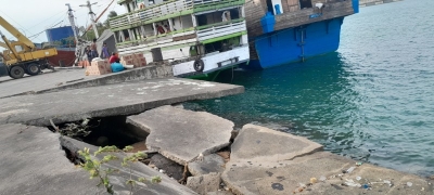 Terlihat air laut telah mengikis tanah bekas beton yang runtuh hingga kedalaman sekitar 1 hingga 5 meter, kondisi yang dinilai sangat berisiko bagi keselamatan aktivitas pelabuhan.